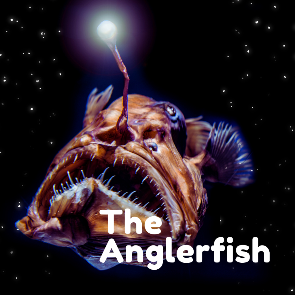 The Angle Fish is the ruler of the eternal darkness; her tensile illuminated lantern moves forward and back over a gauging mouth filled with nasty sharp teeth.