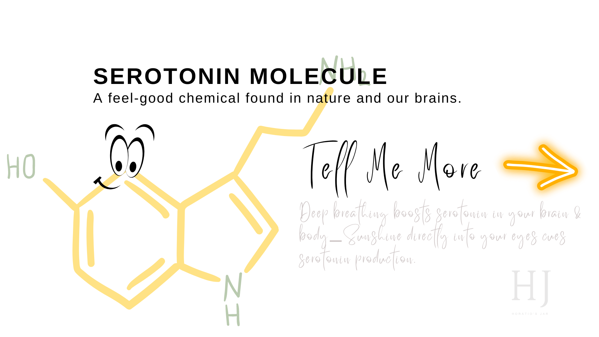 - Deep breathing boosts serotonin in your brain & body—Sunshine directly into your eyes cues serotonin production.
